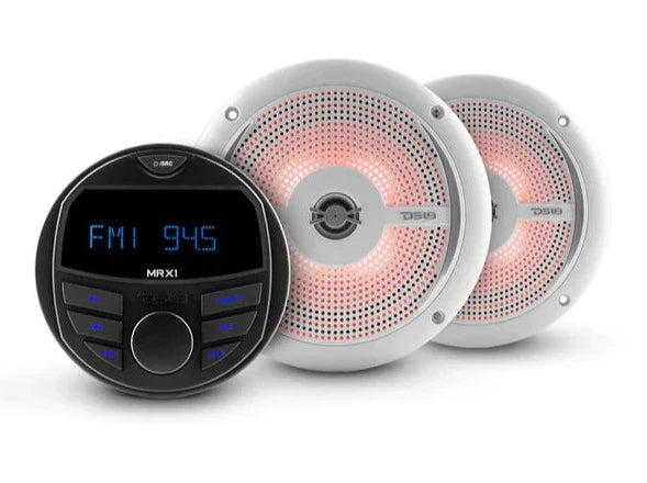 Marine and Powersports Headunit and 6.5” Marine Speaker Package (MRX1 and NXL-6SL/WH) – White
