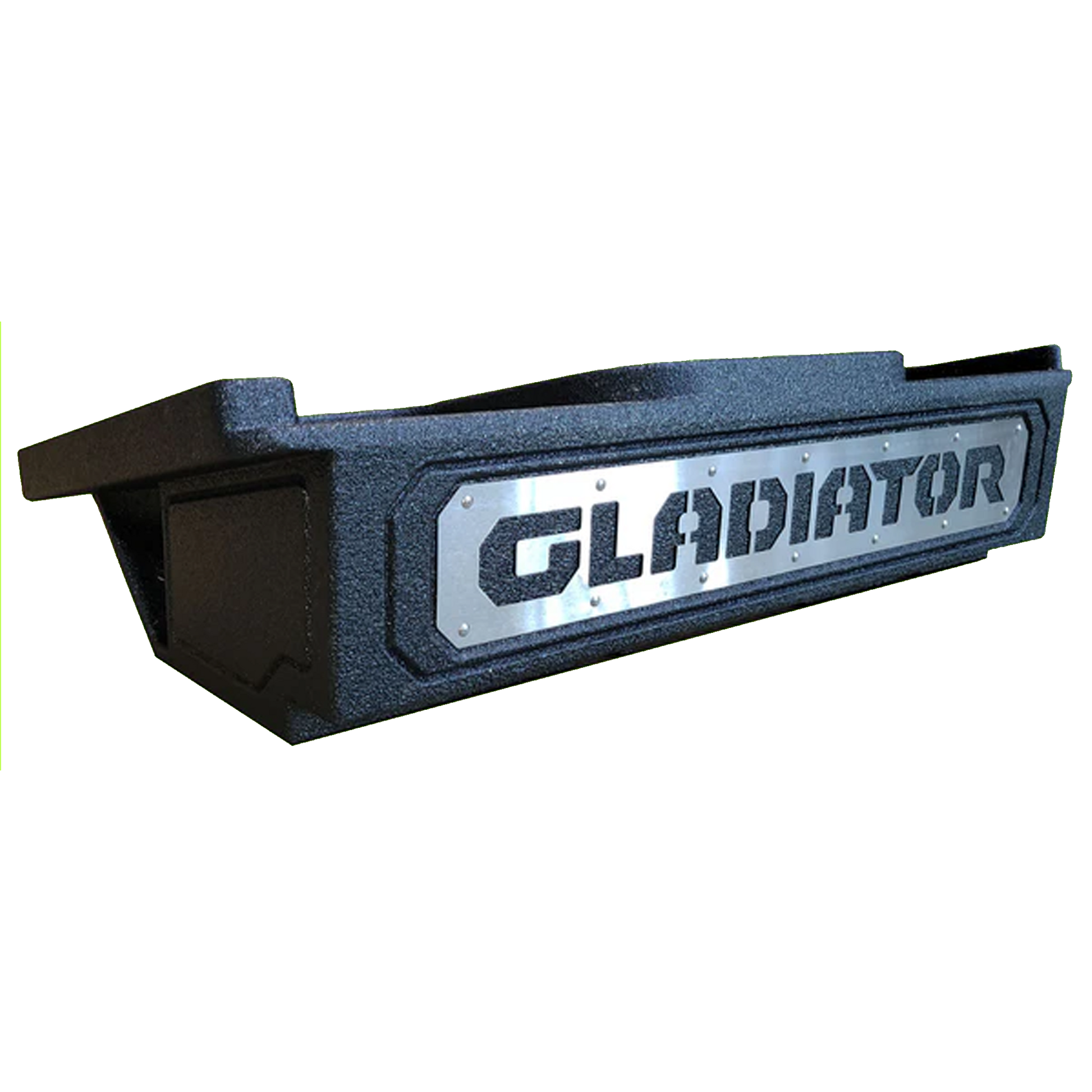 Features laser cut stainless steel Fox Box & Gladiator logo inserts which has excellent contrast with our black textured coating. The inserts are removable in case you want to have them custom powder coated.