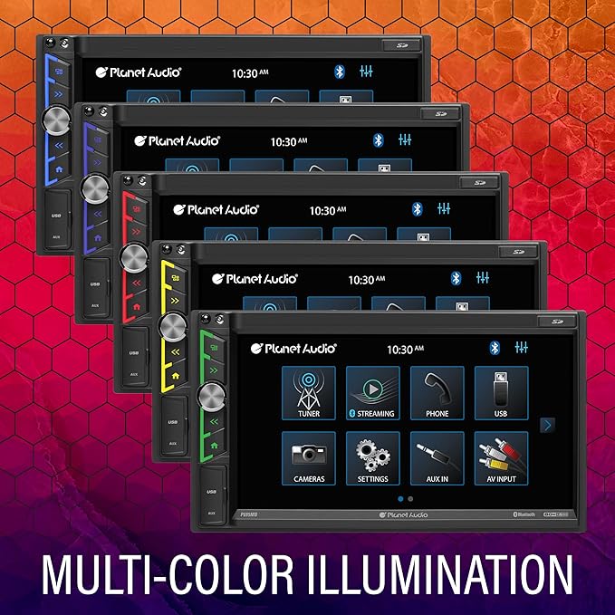 Get more digital music options with the Planet Audio P695MB Mechless (No DVD/CD) double DIN digital media receiver with a 6.95 inch touchscreen.